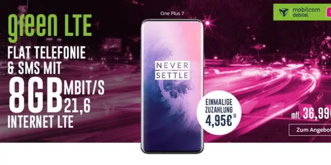 OnePlus 7 pro mit 8GB Allnet Vertrag im Deal bei Modeo – Die OnePlus Modelle findet an derzeit eher selten bei den Anbietern, daher ist es sehr erfreulich, dass Modeo die Smartphones in einen neuen Deal aufgenommen hat und sie in Verbindung mit einer Mobilcom-Debitel Allnet Flatrate für 36.99 Euro monatlich und zum einmaligen Preis von 4.95 Euro anbietet.